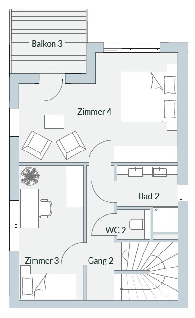 Die Maisonetten überzeugen mit klarer Raumaufteilung, lichtdurchfluteten Wohnbereichen, 3–4 Schlafzimmern und großzügigen Terrassen bzw. Balkonen.